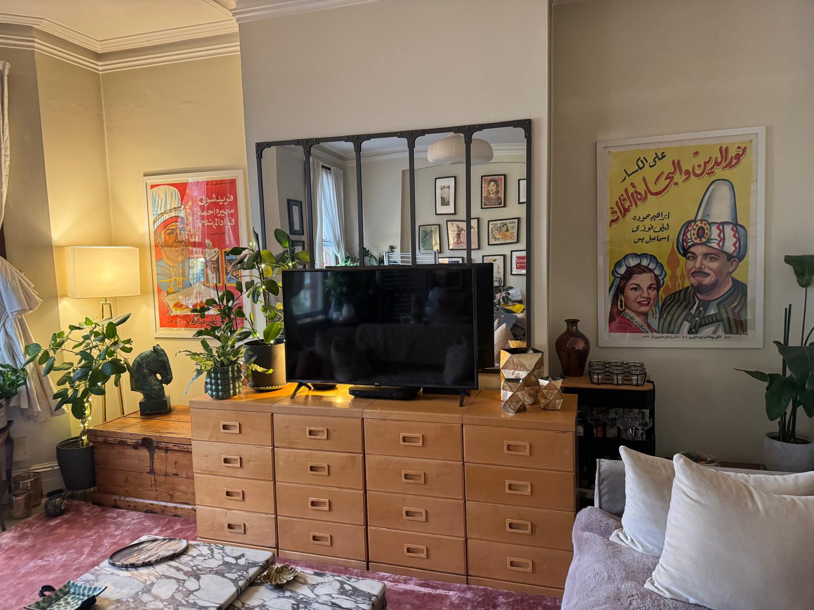 We stored these vintage Danish cabinets for many months until the customer was ready and all moved in. They look great in such a colourful space. Lovely looking room, thank...