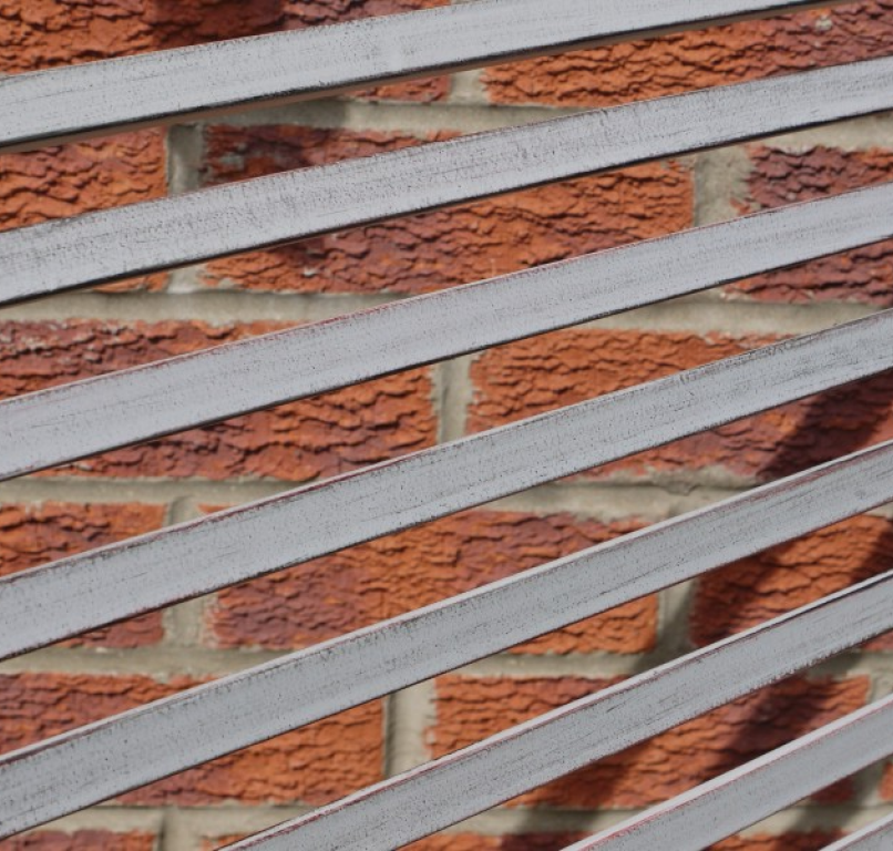 An antiqued steel garden lounger – antiqued finish for a vintage look and made from painted steel for protection, although some natural weathering will occur if left out over winter.