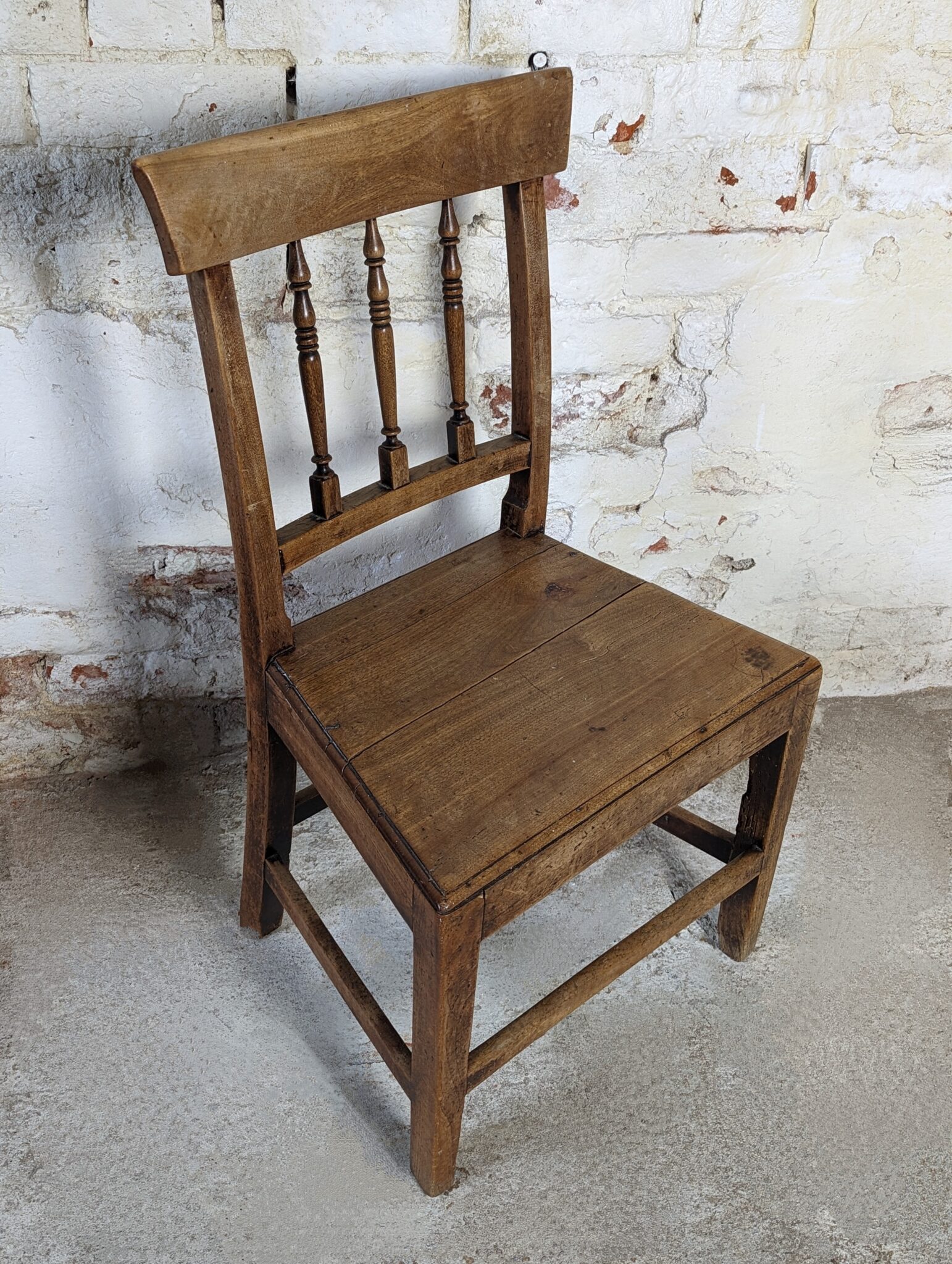 Has a lovely patina to it. Very nice looking chair. Very clean too and solid too.